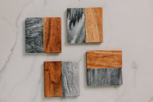 Artisan Marble and Wood Coaster Set of 4