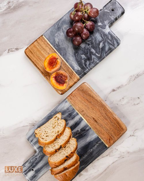 Introducing our exquisite Wood and Marble Paddle Cheese Board - the perfect addition to your entertaining essentials. Crafted from premium-quality wood and marble, this elegant serving platter boasts a unique blend of natural textures and tones that will enhance any table setting.