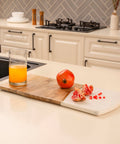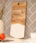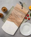 Make every gathering unforgettable with this artisan-crafted Charcuterie & Cheese Board, designed from warm mango wood and cool white marble. The rectangular silhouette features a striking diagonal split—rustic charm meets modern elegance in one timeless piece.